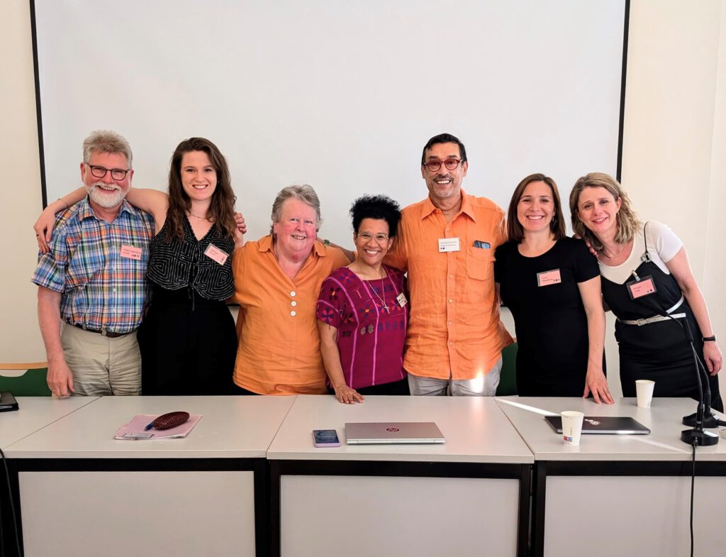 Drei Tage Workshop mit 32 Vorträgen von Wissenschaftler*innen aus Mexiko, Guatemala, Argentinien, Großbritannien, Deutschland und Österreich über das Verhandlungsfeld „Körper und Körperlichkeit“ im Rahmen des neunten Workshops „Befreiende kontextuelle Theologien“ (13.6. bis 15.6.2025 im Otto-Mauer-Zentrum in Wien) stellten den Höhepunkt eines dreiwöchigen internationalen Austauschs zwischen lateinamerikanischen und internationalen sowie mitteleuropäischen Theolog*innen statt. Die 30 Vortragenden gaben Einblick in ihre aktuellen Forschungsprojekte, drei Keynotes der international renommierten Theolog*innen Prof. Lisa Isherwood UK), Prof. Geraldina Céspedes Ulloa (Dominikanische Republik/Spanien) und Prof. Ángel Méndez Montoya (Mexiko) ergänzten das intensive Programm. Es wurde u.a. der Frage nachgegangen, welchen konzeptuellen bzw. theoretischen Beitrag Theologie weltweit für Selbstbestimmung über Körper und Territorium als Lebensgrundlage leisten kann. Aus theologischer Perspektive wurde in Bezug auf Körperlichkeit nicht nur die Frage nach Inkarnation und der anthropologischen Überwindung von Dualismen gestellt, sondern ebenso nach der Idealisierung des Leibes und danach, welche Körper und Lebensformen wo existieren sollen bzw. dürfen. Die Stipendiatinnen waren begeistert von der einmaligen Gelegenheit, Methoden und Zugangsformen von Kolleg*innen anderer Universitäten und einen interdisziplinären Dialog zu erleben. „Diese Erfahrungen werden unser eigenes Forschen nachhaltig prägen“, berichtet eine der Teilnehmerinnen. Auch die Möglichkeit, erstmals auf Englisch über die ganz persönliche Forschung zu berichten und damit persönliche Anliegen des eigenen gesellschaftlichen Kontexts einer internationalen Zuhörerschaft mitzuteilen, war ein sehr einschneidendes Erlebnis und öffnete die Tür zu künftiger internationaler Zusammenarbeit.